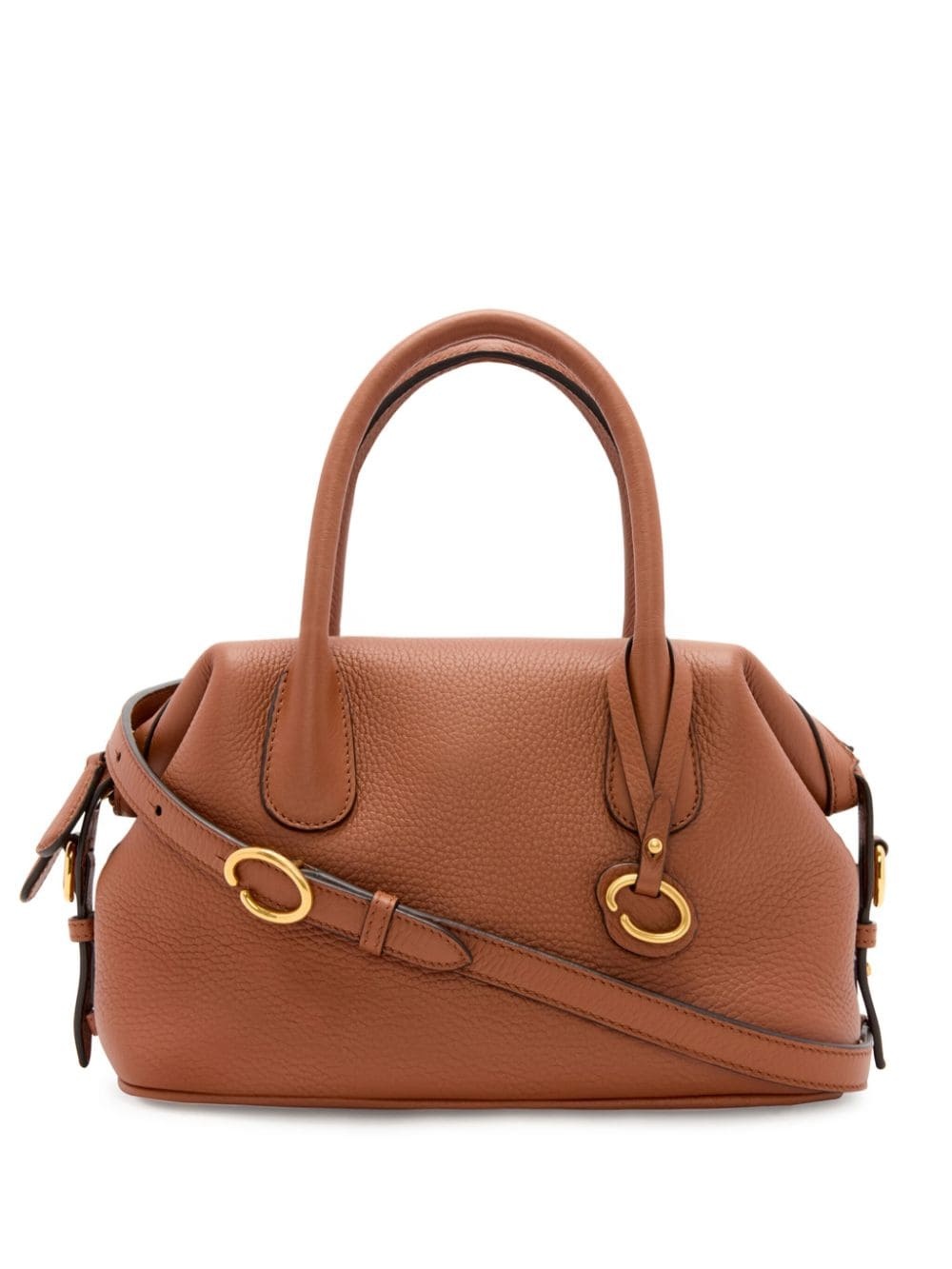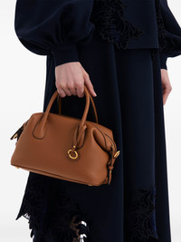The Mini Dahlia tote bag Highlights - Cognac brown - Calf leather - Grained texture - Gold-tone logo plaque - Signature o logo - Logo stamp to the rear - Two rolled top handles - Adjustable detachable shoulder strap - Main compartment - Top zip fastening - Metal feet Made in Italy Composition Outer: Calf Leather 100% SIZE & FIT Measurement DEPTH 7.08 in(18 cm) HANDLE 3.93 in(10 cm) HEIGHT 11.81 in(30 cm) STRAP 21.25 in(54 cm) WIDTH 13.77 in(35 cm)