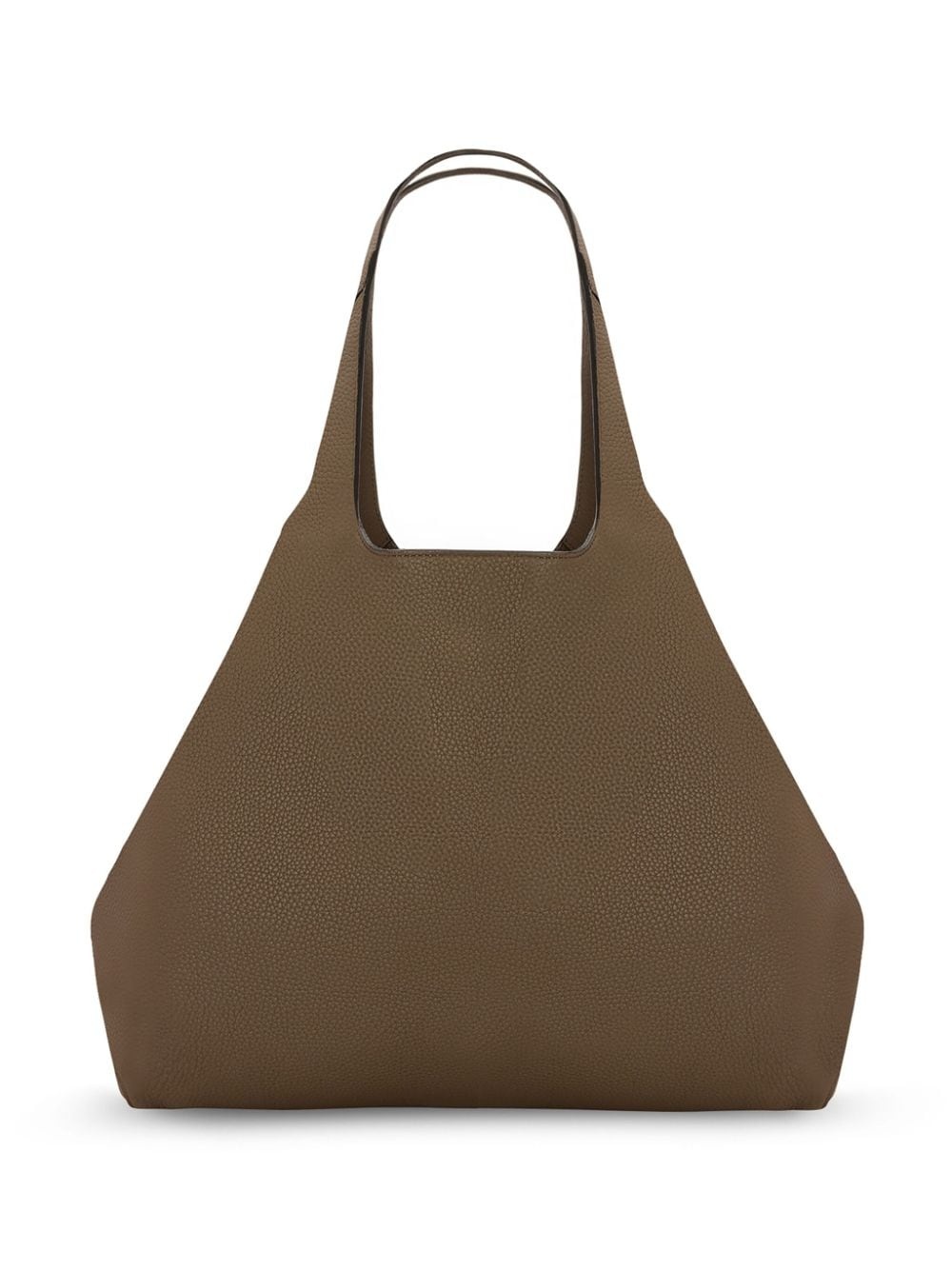 The Topaz tote bag Highlights - Brown - Calf leather - Grained texture - Gold-tone logo plaque - Signature o logo - Logo stamp to the front - Two top handles - Main compartment - Unlined - Logo d-ring closure Made in Italy Composition Outer: Calf Leather 100% SIZE & FIT Measurement DEPTH 6.29 in(16 cm) HANDLE 9.84 in(25 cm) HEIGHT 13.38 in(34 cm) WIDTH 15.74 in(40 cm)