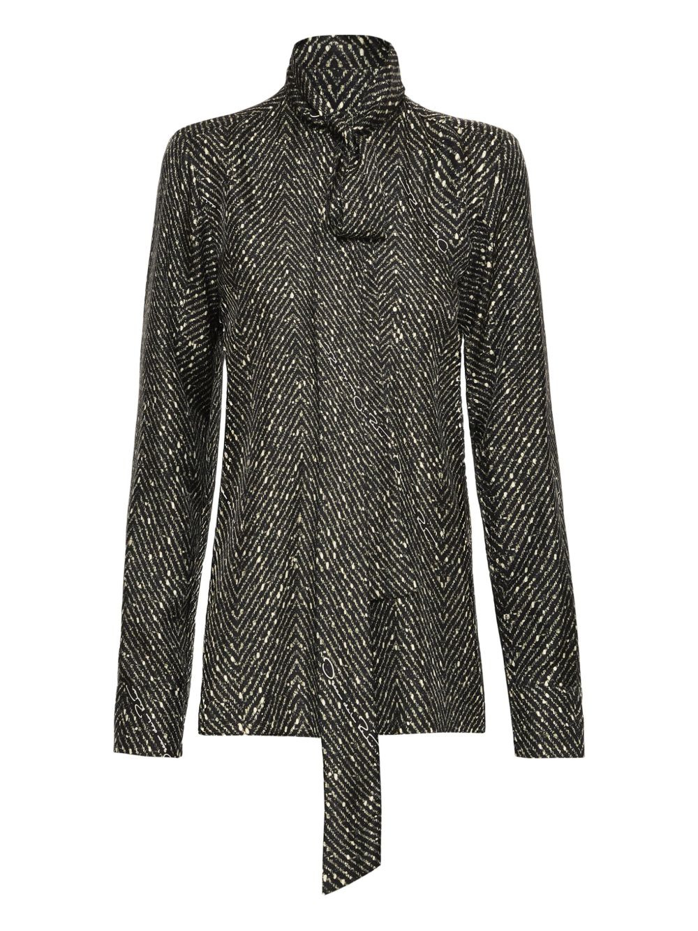 CHEVRON TIE-NECK SILK TWILL BLOUSE