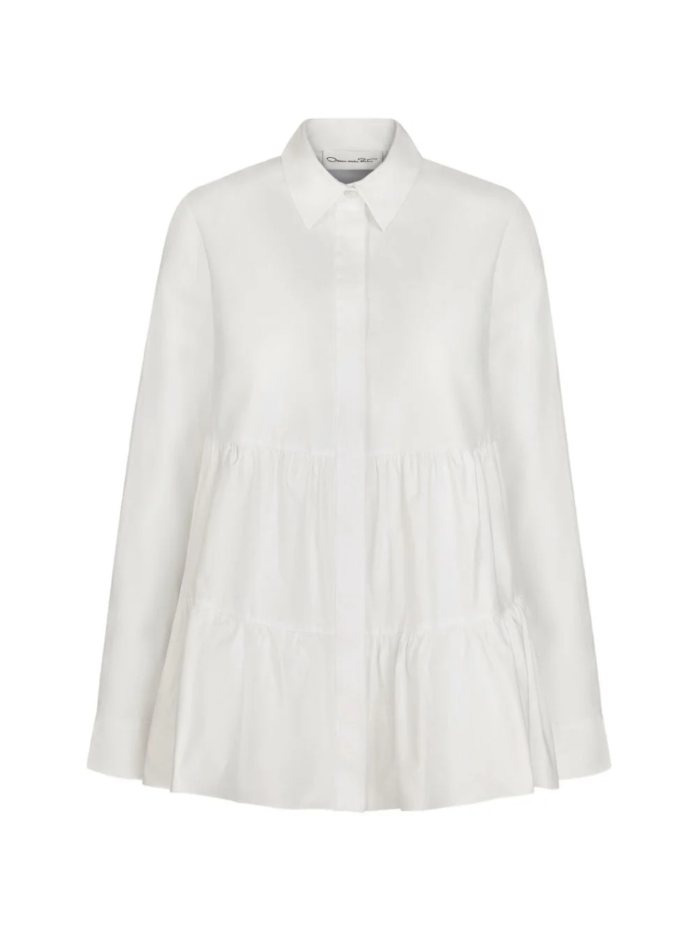 tiered cotton poplin blouse Highlights - Long sleeves with button cuffs - Spread-collar - Concealed button front Made in Italy Composition Cotton 98%, Elastane 2% Washing instructions Read Manufacturer Guidelines