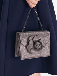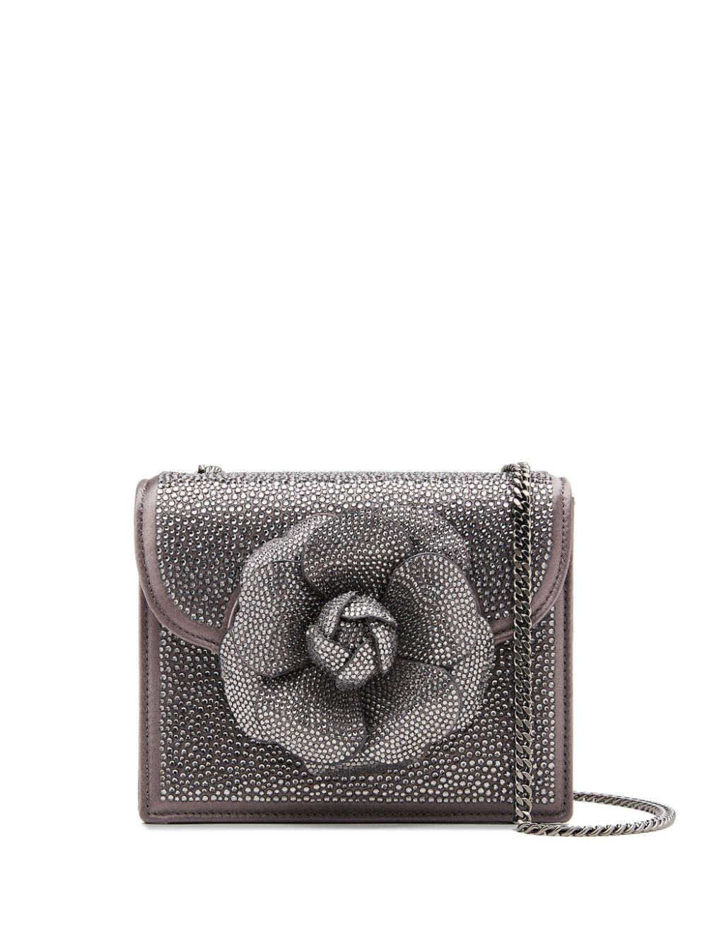 Tro crystal-embellished mini bag Highlights - Dark grey - Suede - Satin finish - Crystal embellishment - Floral applique - Foldover top - Detachable chain-link shoulder strap - Main compartment - Internal logo stamp - Internal patch pocket Made in Italy Composition Lining: Suede 100% Outer: Satin 100% SIZE & FIT Measurement DEPTH 3.14 in(8 cm) HEIGHT 5.31 in(13.5 cm) STRAP 47.24 in(120 cm) WIDTH 6.69 in(17 cm) HANDLE 22.48 in(57.1 cm)