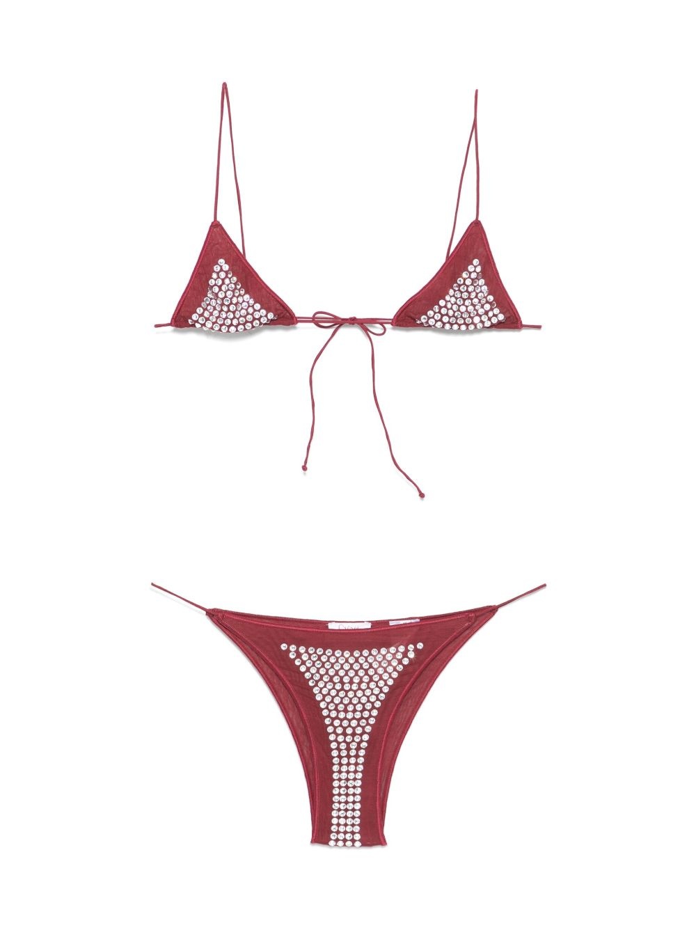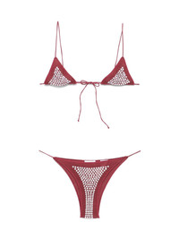 crystal-embellished bikini Highlights - Bordeaux red - Halterneck tie fastening - Rear tie fastening - Side tie fastening - Be mindful to try on swimwear over your own garments. Made in Italy Composition Polyamide 82%, Spandex/Elastane 18% Washing instructions Hand Wash