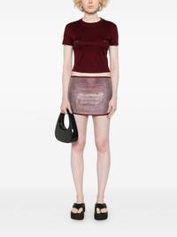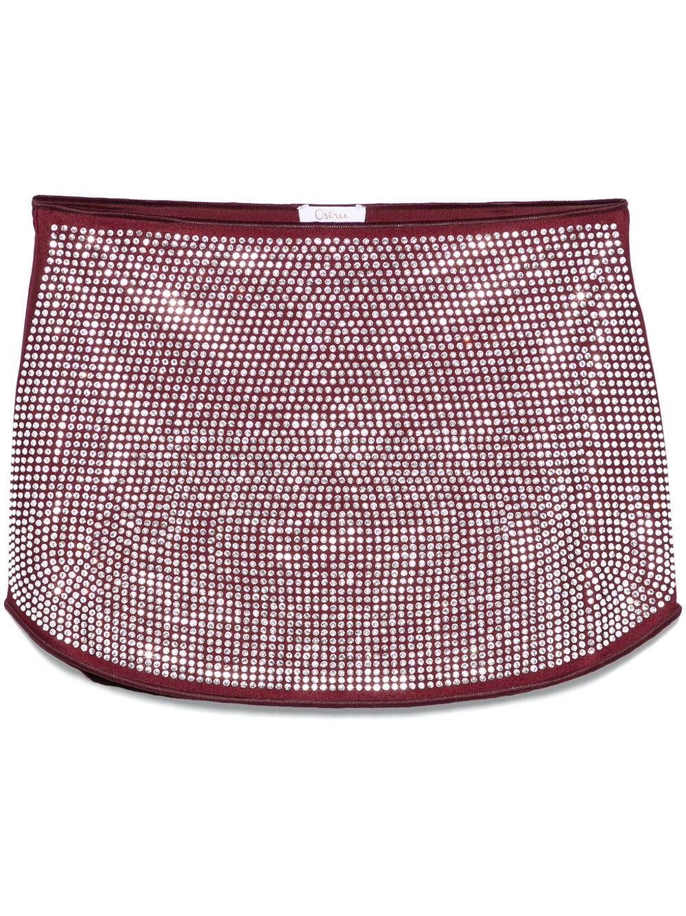 crystal-embellished mini skirt Highlights - Wine red - Elasticated waistband - Unlined Made in Italy Composition Polyamide 80%, Spandex/Elastane 20% SIZE & FIT Model measurements Height 5 ft 9 in(1.75 m) Bust/Chest 34.64 in(88 cm) Hips 36.61 in(93 cm) Waist 26.37 in(67 cm) FittingInformation This mini-length skirt is intended to be worn low on the hips Slightly short in length; consider your own measurements Made from a midweight stretch fabric, this piece offers elasticity and flexibility when worn