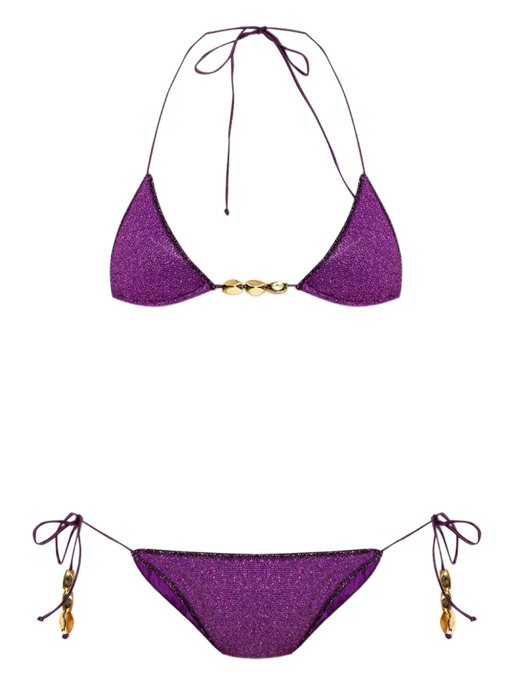 glitter-detailing bikini Highlights - Purple - Adjustable tie straps - Triangle shape - Ruched side ties - Be mindful to try on swimwear over your own garments. Made in Italy Composition Lurex 100%, Polyamide 100% Washing instructions Read Manufacturer Guidelines