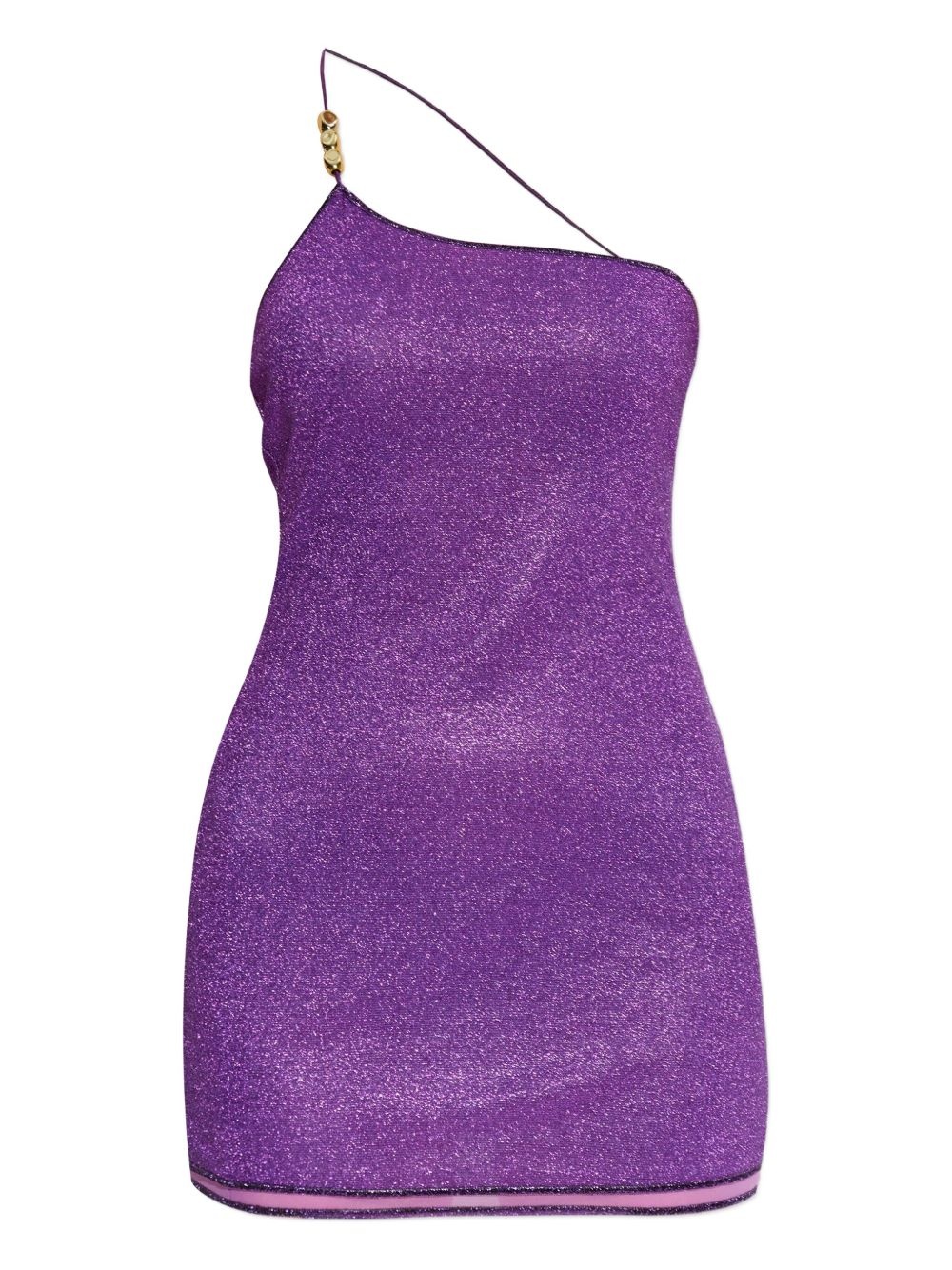 Lumiere asymmetric mini dress Highlights - Purple - One-shoulder design - Gold-tone embellishment - Lurex finish Made in Italy Composition Glitter 100%, Polyamide 64%, Lurex 36% SIZE & FIT FittingInformation Designed for a close fit throughout Slightly short in length; consider your own measurements Made from a lightweight fabric