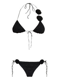 Lumiere Rose bikini Highlights - Black - Lurex detailing - Floral appliques - Adjustable ties - Triangle top - Tie-side bottoms - Be mindful to try on swimwear over your own garments. Made in Italy Composition Glitter 100%, Polyamide 64%, Lurex 36% Washing instructions Read Manufacturer Guidelines