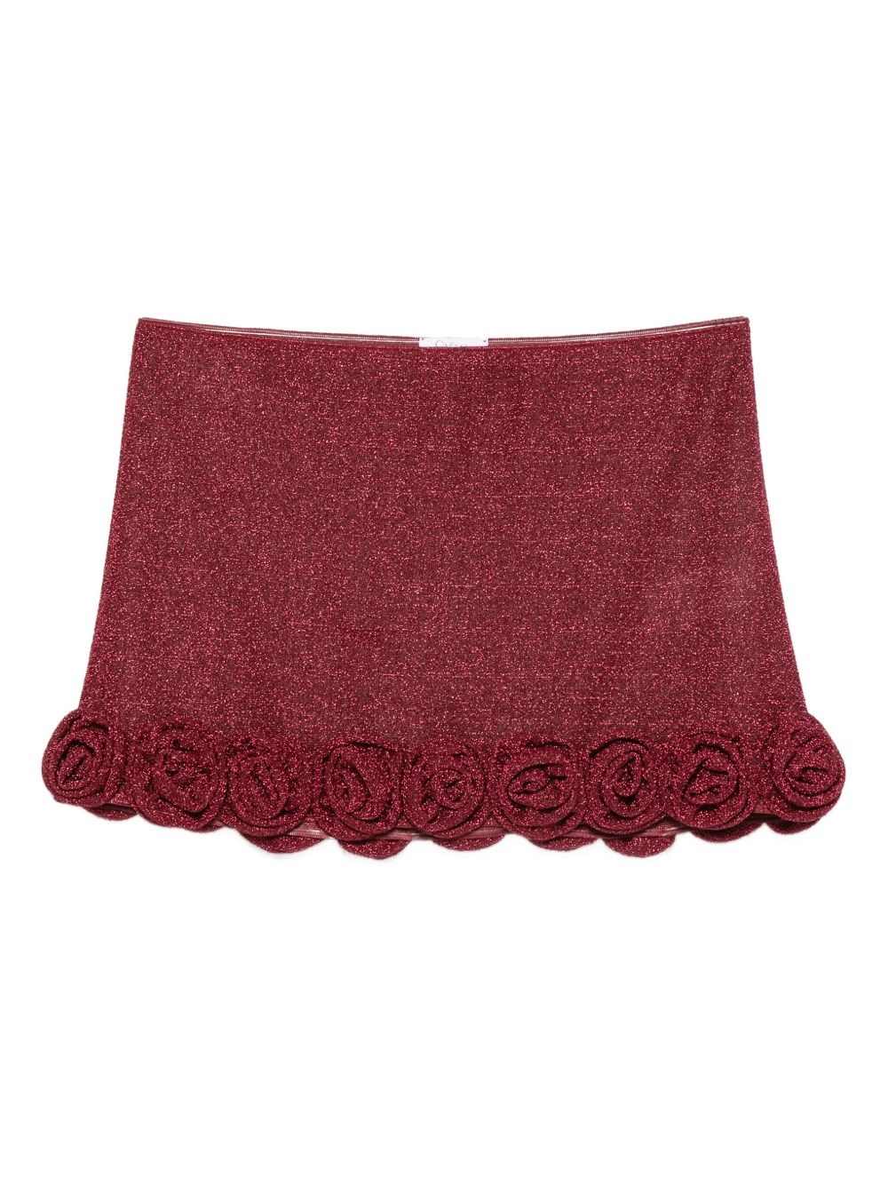 Lumiere Rose mini skirt Highlights - Burgundy - Elasticated waistband - Floral applique Made in Italy Composition Lining: Polyamide 82%, Elastane 18% Outer: Polyamide 64%, Metallic Fibre 36% SIZE & FIT Model measurements Height 5 ft 9 in(1.75 m) Bust/Chest 32.67 in(83 cm) Hips 36.22 in(92 cm) Waist 24.8 in(63 cm) FittingInformation This mini-length skirt is intended to be worn low on the hips Made from a lightweight fabric Washing instructions Machine Wash