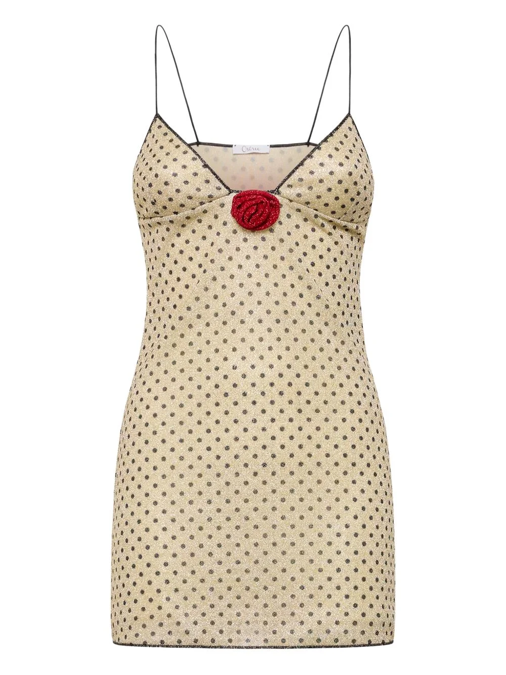 Lumiere Rose Pois mini dress Highlights - Beige and black - Polka-dot print - Rose applique - Thin straps - V-neck - Mini length Imported Composition Fabric 100% Washing instructions Read Manufacturer Guidelines