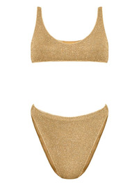 Lumiere Sporty 90s lurex bikini Highlights - Gold-tone - Stretch-design - Lurex detailing - Scoop neck - Slip-on style - High-waisted bottoms - Be mindful to try on swimwear over your own garments. Made in Italy Composition Outer: Polyamide 64%, Metallic Fibre 36%, Elastane 15% Lining: Polyamide 85%