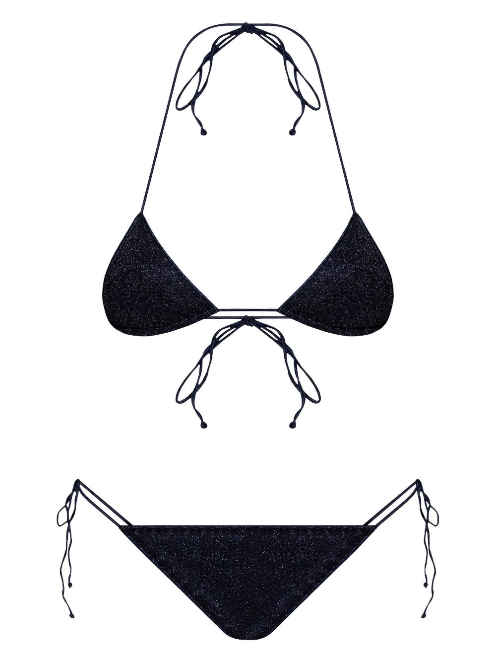 lurex bikini set Highlights - Midnight blue - Side tie fastening - Triangle cup - Lurex detailing - Be mindful to try on swimwear over your own garments. Made in Italy Composition Polyamide 64%, Fabric 36%