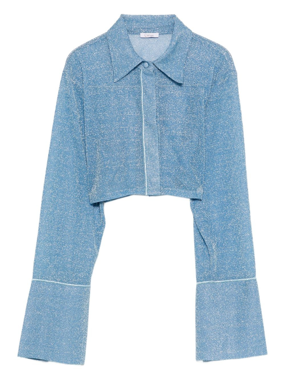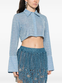 lurex cropped top Highlights - Light blue - Lurex knit - Cropped length - Classic collar - Button fastening - Wide cuffs Made in Italy Composition Polyamide 64%, Metallic Fibre 36% SIZE & FIT Model measurements Height 5 ft 9 in(1.75 m) Bust/Chest 32.67 in(83 cm) Hips 36.22 in(92 cm) Waist 24.8 in(63 cm) Washing instructions Machine Wash