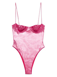 metallic-finish swimsuit Highlights - Pink - Metallic finish - Sweetheart neckline - Thin straps - High-leg cut - Be mindful to try on swimwear over your own garments. Made in Italy Composition Outer: Polyester 96%, Elastane 4% Lining: Polyamide 84%, Elastane 16% Washing instructions Hand Wash