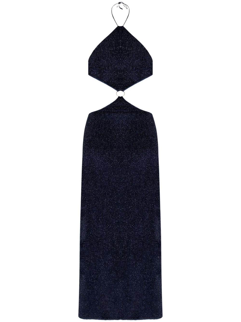 Oseree dress Highlights - Midnight blue - Rear touch-strap fastening - Glitter detailing - Asymmetric hem - Cut-out detailing Made in Italy Composition Polyamide 64%, Fabric 36%