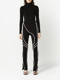 contrast-trim flared trousers black contrasting trim flared high waist strap detailing Imported Composition Viscose 75%, Nylon 25%