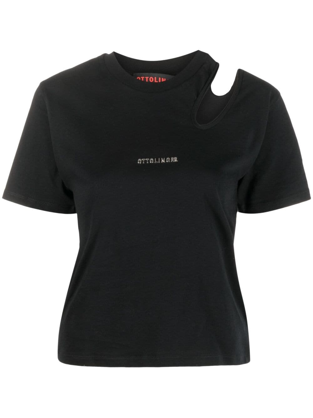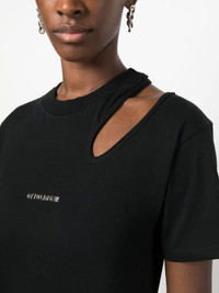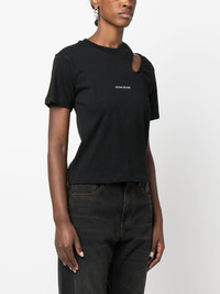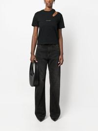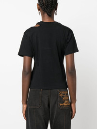 cut-out detail organic cotton T-shirt Highlights - Black - Organic cotton - Cut-out detailing - Embossed logo to the front - Crew neck - Short sleeves - Straight hem Imported Composition Organic Cotton 100% SIZE & FIT Model measurements Height 5 ft 10 in(1.77 m) Bust/Chest 29.92 in(76 cm) Hips 34.25 in(87 cm) Waist 23.62 in(60 cm) Measurement SLEEVE LENGTH 6.29 in(16 cm) Shoulder Width 14.56 in(37 cm) LENGTH 19.68 in(50 cm) BUST 29.92 in(76 cm) FittingInformation Designed for a slim fit that sits just away from the body offering a close yet comfortable fit Made from a midweight non-stretch fabric, this piece offers minimal elasticity when worn This piece fits true to size – take your usual size Washing instructions Machine Wash