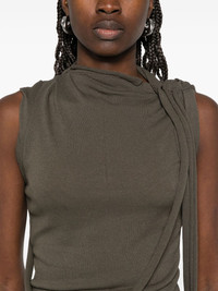 deconstructed tank top Highlights - Olive green - Asymmetric neck - Sleeveless - Strap detailing - Gathered detailing Imported Composition Viscose 60%, Recycled Viscose 20%, Linen/Flax 20% SIZE & FIT Model measurements Height 5 ft 11 in(1.8 m) Bust/Chest 32.67 in(83 cm) Hips 36.22 in(92 cm) Waist 24.4 in(62 cm) FittingInformation Designed for a close fit throughout Made from a lightweight non-stretch fabric, this piece offers minimal elasticity when worn