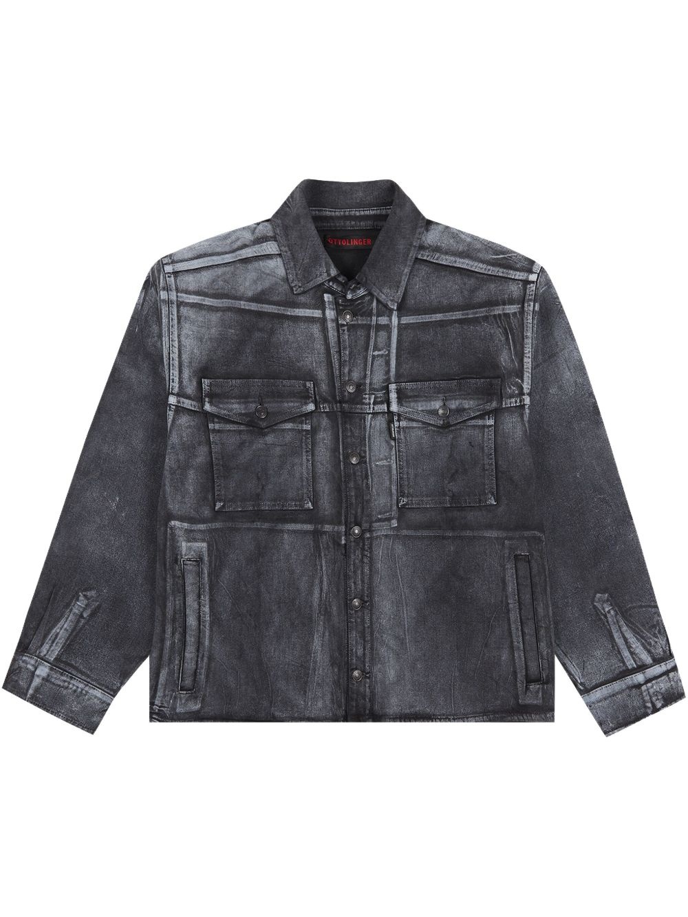 denim overshirt Highlights - Black - Front button fastening - Classic collar - Long sleeves - Two chest flap pockets - Two side welt pockets - Applique logo - Buttoned cuffs - Straight hem Imported Composition Cotton 81%, Recycled Cotton 14%, Recycled Polyester 4%, Elastane 1% Washing instructions Read Manufacturer Guidelines