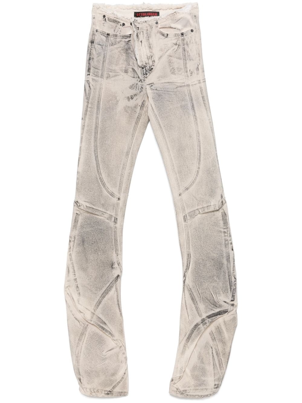 draped raw-cut jeans Highlights - Cream white/black - Cotton blend - Coated finish - Faded effect - Raw-cut edge - Draped detailing - Asymmetric hook and zip fly fastening - Mid-rise - Classic five pockets - Skinny cut Imported Composition Cotton 77%, Rubber 14%, Recycled Polyester 7%, Spandex/Elastane 2% SIZE & FIT Model measurements Height 5 ft 10 in(1.77 m) Bust/Chest 32.28 in(82 cm) Hips 35.03 in(89 cm) Waist 25.19 in(64 cm) FittingInformation Designed with a bootcut leg, these jeans allow for a close fit at the waist and with an unrestricted, comfortable fit and additional room at the calves Constructed from stretch denim, this piece offers a stretch fit with durability