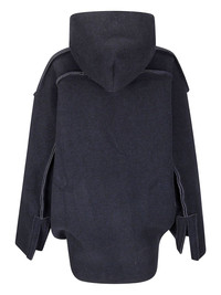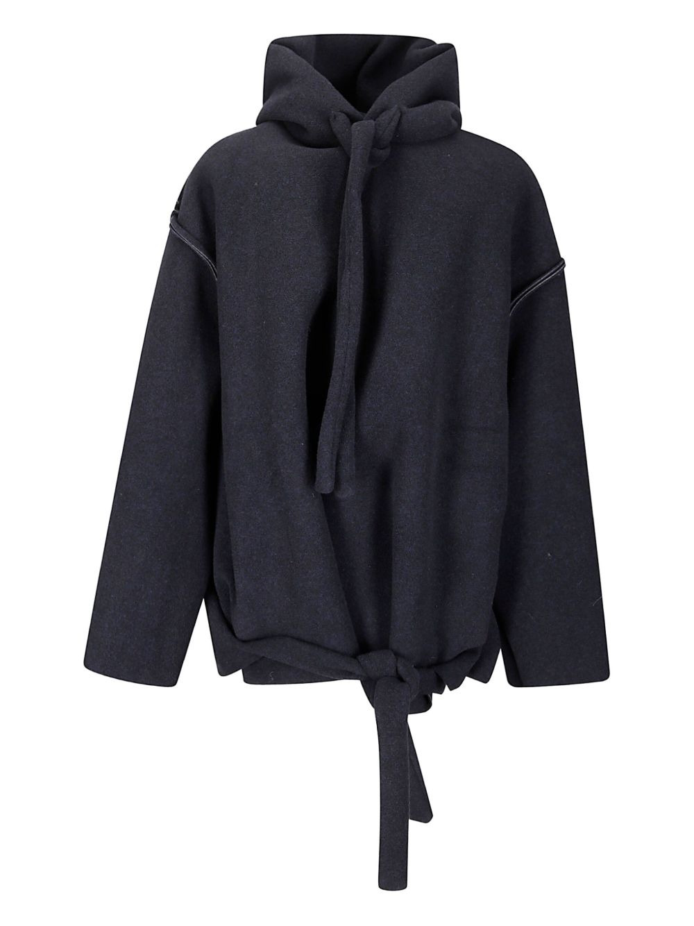 drawstring-hood laser-cut jacket Highlights - Dark navy - Drawstring hood - Laser-cut details - Dropped shoulders - Tie fastening - Long sleeves Imported Composition Polyester 60%, Lycra 25%, Wool 12%, Elastane 3%