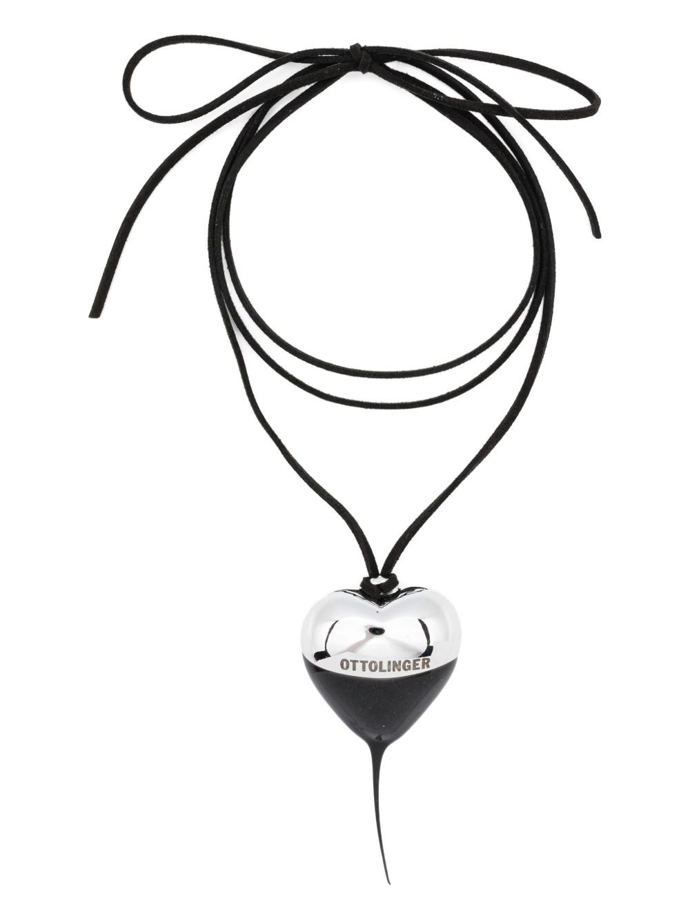 heart-shaped drop necklace Highlights - Silver-tone - Black - Heart pendant - Suede cord - Two-tone effect - Pointed drop - Knotted fastening Imported SIZE & FIT Measurement Length when open 56 in(142.2 cm)