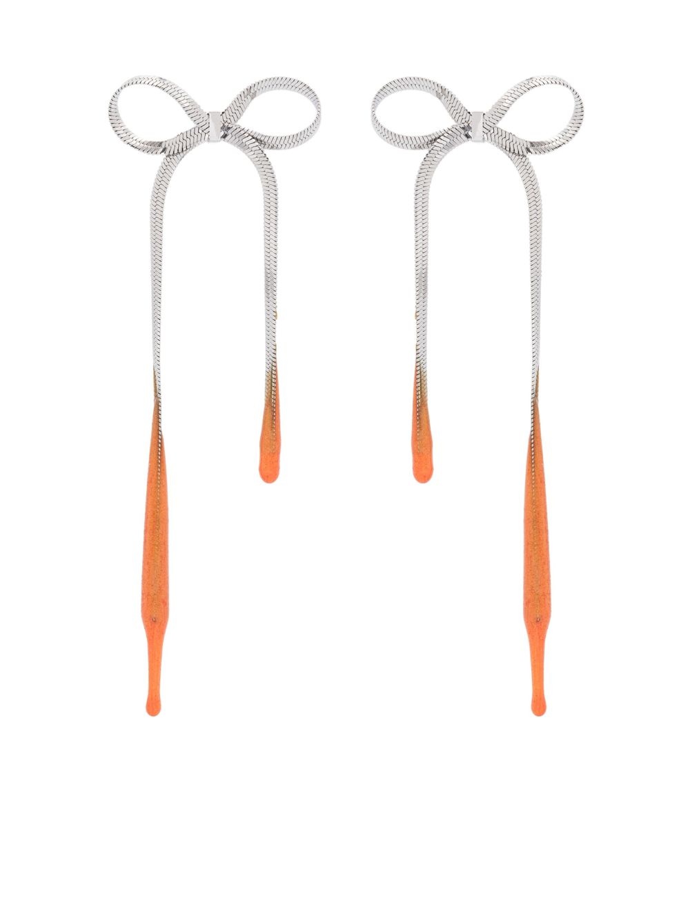 Laced Bow earrings Highlights - Silver-tone - Butterfly fastening - For pierced ears - These earrings come as a pair. - This piece comes complete with a protective dust bag. Imported SIZE & FIT Model measurements Height 5 ft 10 in(1.77 m) Bust/Chest 29.92 in(76 cm) Hips 34.25 in(87 cm) Waist 23.62 in(60 cm) Measurement HEIGHT 3.93 in(10 cm) Weight (single earring) 3 g(3 g) WIDTH 1.29 in(3.3 cm)