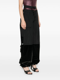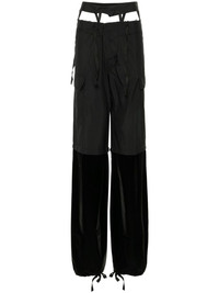 raw-cut finish trousers Highlights - Black - Cotton - Panelled design - Technical jersey - Cire finish - Raw-cut finish - Mini logo tag - Logo patch to the rear - Double waist - Front button fastening - Off-centre front zip fastening - Two side cargo pockets - Two rear flap pockets - Straight leg with drawstring ankles Imported Composition Lining: Cotton 100% Outer: Polyester 76%, Recycled Polyester 24% SIZE & FIT Model measurements Height 5 ft 10 in(1.77 m) Bust/Chest 33.85 in(86 cm) Hips 37 in(94 cm) Waist 26.37 in(67 cm) FittingInformation Designed with a wide-leg cut, these trousers allow for a close fit at the waist and offer a loose and roomy fit over the leg The internal drawstring at the hem allows for fitted preferences at the ankle Made from a midweight non-stretch fabric This piece fits true to size – take your usual size