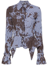 stained gingham ruffled shirt Highlights - Blue/white - Cotton - Textured finish - Gingham check pattern - Stained effect - Spread collar - Ruffled detailing - Long sleeves - Ruffle cuffs - Draped detailing - Curved hem - Front button fastening Imported Composition Cotton 100% SIZE & FIT Model measurements Height 5 ft 10 in(1.77 m) Bust/Chest 32.28 in(82 cm) Hips 35.03 in(89 cm) Waist 25.19 in(64 cm) FittingInformation Designed for a slim fit that sits just away from the body offering a close yet comfortable fit Made from a midweight non-stretch fabric This piece fits true to size – take your usual size