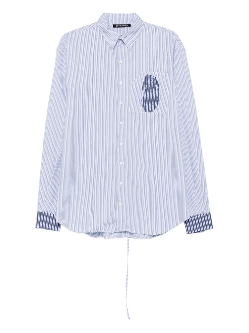 striped patch-pocket shirt Highlights - Light blue - Navy blue stripes - Patch pocket - Drawstring hem - Long sleeves - Button fastening Imported Composition Cotton 95%, Polyamide 4%, Elastane 1% SIZE & FIT Model measurements Height 5 ft 10 in(1.78 m) Bust/Chest 33.85 in(86 cm) Hips 36.61 in(93 cm) Waist 26.77 in(68 cm) Washing instructions Machine Wash