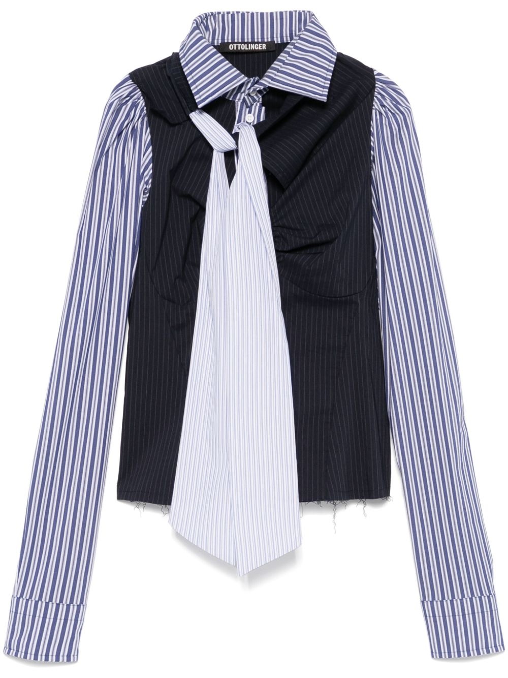 striped shirt Highlights - Navy blue - Front button fastening - Deconstructed design - Buttoned cuffs - Scarf detailing Imported Composition Cotton 69%, Polyamide 28%, Elastane 2%, Polyester 1% SIZE & FIT Model measurements Height 5 ft 11 in(1.8 m) Bust/Chest 32.67 in(83 cm) Hips 36.22 in(92 cm) Waist 24.4 in(62 cm) FittingInformation Designed for a slim fit that sits just away from the body offering a close yet comfortable fit Made from a midweight stretch fabric, this piece offers elasticity and flexibility when worn