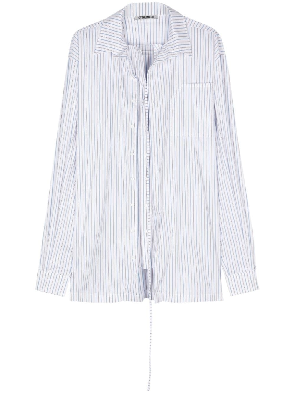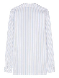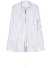 textured striped shirt Highlights - Blue/white - Cotton blend - Textured finish - Vertical stripe pattern - Spread collar - V-neck - Long sleeves - Pleat detailing - Buttoned cuffs - Chest patch pocket - Short side slits - Straight hem - Front button fastening Imported Composition Cotton 74%, Polyamide 23%, Elastane 3%