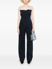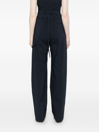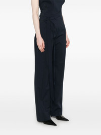 wrap trousers Highlights - Midnight blue - Concealed front button, hook and zip fastening - Side tie fastening - Rounded pocket to the side - Side inset pocket Imported Composition Outer: Cotton 52%, Polyamide 41%, Elastane 4%, Polyester 3% Lining: Polyester 100% SIZE & FIT Model measurements Height 5 ft 9 in(1.75 m) Bust/Chest 34.64 in(88 cm) Hips 36.61 in(93 cm) Waist 26.37 in(67 cm) FittingInformation Designed for a straight-leg fit, these trousers allow for a close fit at the waist and an unrestricted, comfortable fit over the leg Made from a midweight stretch fabric, this piece offers elasticity and flexibility when worn