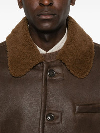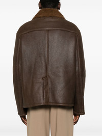Alaska leather jacket Highlights - Brown - Front button placket - Shearling collar - Long sleeves - Two side pockets - Central rear vent Imported Composition Lamb Shearling 100%, Leather 100% SIZE & FIT Measurement SLEEVE LENGTH 25.59 in(65 cm) WAIST 48.03 in(122 cm) FittingInformation Designed for a boxy fit, intended for a loose fit throughout The vented hem offers movement at the rear Firm shearling has a treated construction offering some durability Washing instructions Do Not Wash/Do Not Dry Clean
