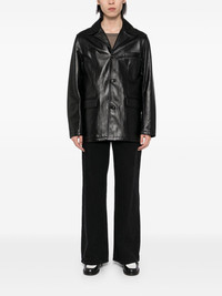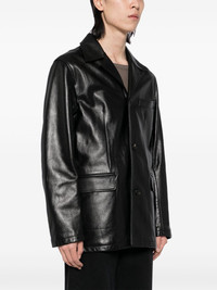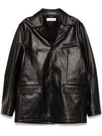 Alley jacket Highlights - Black - Front button fastening - Chest welt pocket - Two front flap pockets - Full lining Imported Composition Lining: Cotton 75%, Viscose 25% Outer: Calf Leather 100% SIZE & FIT Model measurements Height 6 ft 2 in(1.87 m) Bust/Chest 33.07 in(84 cm) Hips 35.43 in(90 cm) Waist 26.77 in(68 cm) FittingInformation Designed to be unstructured, offering a loose fit throughout The vented hem offers movement at the rear Firm leather offering little flexibility to maintain its durability and sturdiness