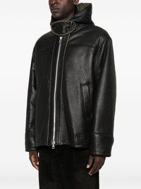 Blizzard hooded leather jacket Highlights - Black - Lambskin - Zip front fastening - Hooded neckline - Shearling lining - Side welt pockets Imported Composition Lambskin 100%, Sheepskin 100%, Cotton 100%, Cattle Horn 100% SIZE & FIT Model measurements Height 6 ft 2 in(1.87 m) Bust/Chest 36.41 in(92.5 cm) Hips 37 in(94 cm) Waist 29.52 in(75 cm) Washing instructions Specialist Cleaning
