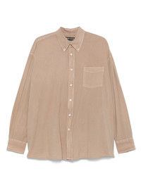 Borrowed BD shirt Highlights - Taupe - Front button fastening - Button-down collar - Buttoned cuffs - Chest patch pocket Imported Composition Mother of Pearl 100%, Cotton 100% SIZE & FIT Model measurements Height 6 ft 2 in(1.87 m) Bust/Chest 36.22 in(92 cm) Hips 37 in(94 cm) Waist 27.95 in(71 cm) FittingInformation Designed for an oversized fit, offering additional room throughout Made from a midweight non-stretch fabric