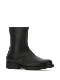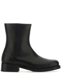 Camion leather ankle boots Clean and sleek, Our Legacy's Camion boots are crafted from plain black leather that make for a versatile shoe. A square toe and chunky low block heel are features that make for its distinguished design. Highlights - Black - Calf leather - Rubber sole - Ankle height - Side zip fastening Made in United States Composition Lining: Leather 100% Sole: Leather 100% Outer: Calf Leather 100% SIZE & FIT Measurement HEEL 1.57 in(4 cm) Sole height 0.59 in(1.5 cm)