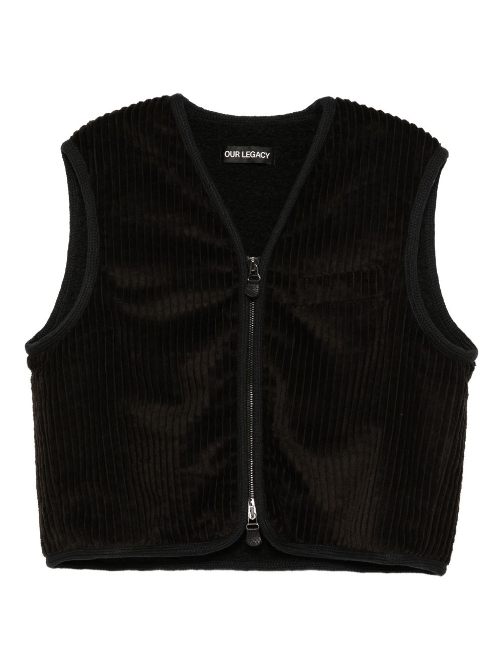 cotton vest Highlights - Black - Front two-way zip fastening - V-neck - Sleeveless - Chest welt pocket Imported Composition Lining: Polyester 80%, Acrylic 20% Outer: Cotton 100% SIZE & FIT Model measurements Height 6 ft 3 in(1.9 m) Bust/Chest 19.29 in(49 cm) Hips 38.58 in(98 cm) Waist 32.28 in(82 cm) FittingInformation Designed for a boxy fit, intended for a loose fit throughout Cropped in length Made from a midweight non-stretch fabric Washing instructions Machine Wash