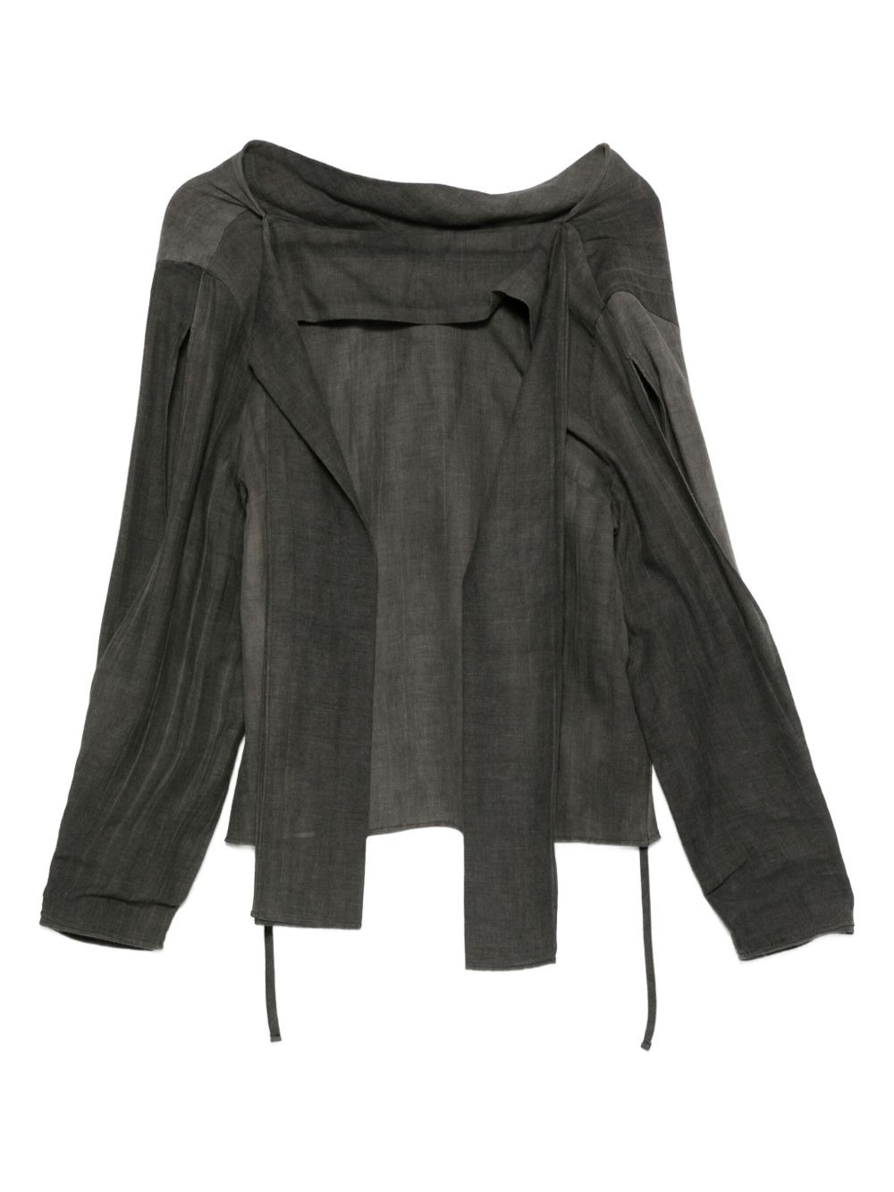 cotton-wool tie blouse Highlights - Grey - Tie detail - Long sleeves - Open front - Panelled design - Round neck Imported Composition Cotton 90%, Wool 10% Washing instructions Read Manufacturer Guidelines