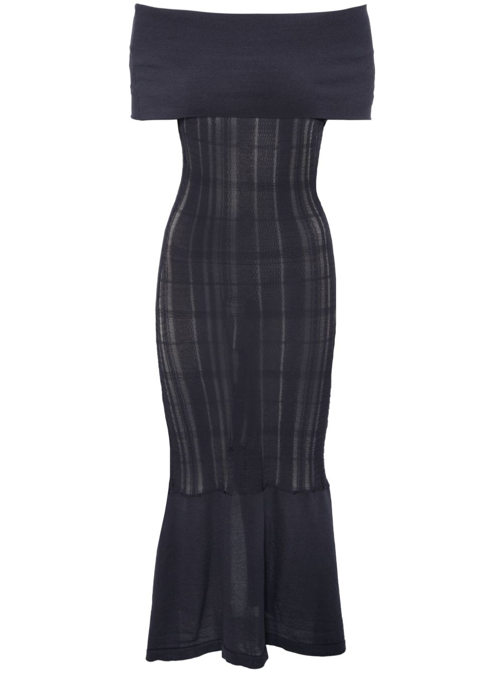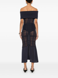 Cover midi dress Highlights - Navy blue - Off-shoulder - Folded edge - Sleeveless - Rear slit Imported Composition Cotton 78%, Polyamide 22% SIZE & FIT Model measurements Height 5 ft 10 in(1.77 m) Bust/Chest 31.88 in(81 cm) Hips 36.22 in(92 cm) Waist 24.01 in(61 cm) FittingInformation Designed for a close fit throughout Made with a lightweight knit, this piece offers some stretch Washing instructions Machine Wash