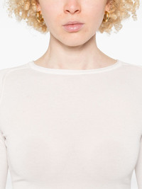 crew-neck top Highlights - White - Long sleeves - Rolled trim Imported Composition Cotton 78%, Polyamide 22% SIZE & FIT Model measurements Height 5 ft 9 in(1.75 m) Bust/Chest 34.64 in(88 cm) Hips 36.61 in(93 cm) Waist 26.37 in(67 cm) FittingInformation Designed for a slim fit that sits just away from the body offering a close yet comfortable fit Made with a lightweight knit, this piece offers some stretch