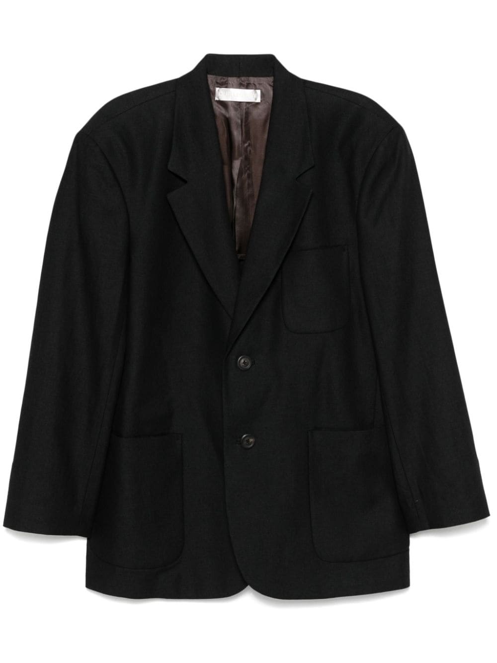 Embrace blazer Highlights - Black - Cotton blend - Canvas - Front button fastening - Notched lapels - Long sleeves - Chest patch pocket - Two side patch pockets - Internal slip pocket - Unlined - Straight hem Imported Composition Outer: Cotton 89%, Hemp 11% Lining: Viscose 55%, Acetate 45% SIZE & FIT Model measurements Height 6 ft 2 in(1.87 m) Bust/Chest 38.97 in(99 cm) Hips 37.99 in(96.5 cm) Waist 29.52 in(75 cm) FittingInformation Designed to be unstructured, offering a loose fit throughout The internal shoulder pads offer a structured shape Made from a midweight non-stretch fabric