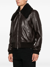 fur-collar bomber jacket Highlights - Cedar brown - Fur collar - Zip fastening - Ribbed hem - Ribbed cuffs - Long sleeves Imported Composition Calf Leather 100% SIZE & FIT Model measurements Height 6 ft 1 in(1.85 m) Bust/Chest 35.82 in(91 cm) Hips 37.79 in(96 cm) Waist 29.13 in(74 cm) Washing instructions Read Manufacturer Guidelines