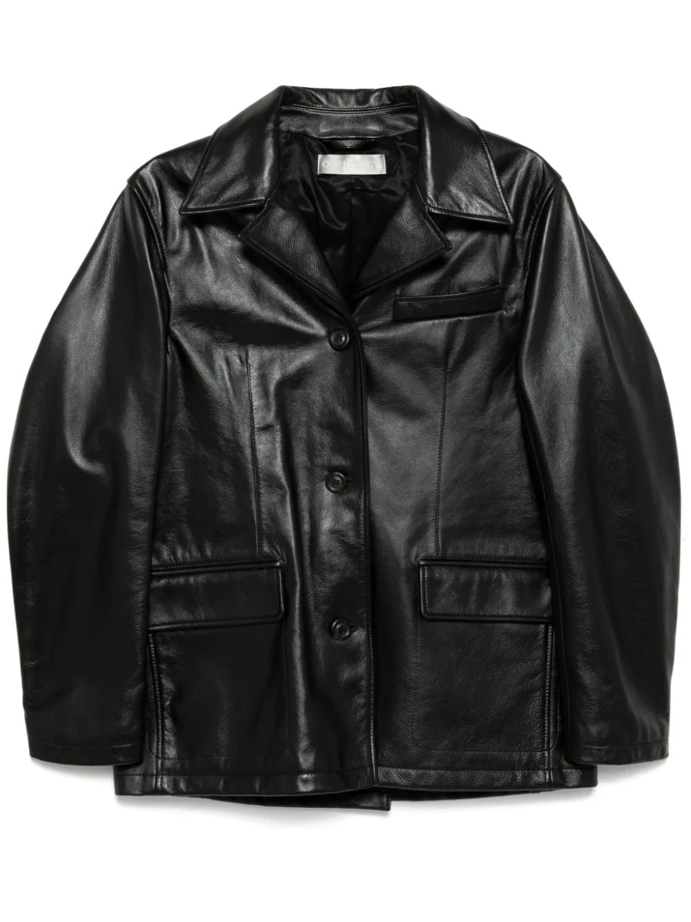 Lane jacket Highlights - Black - Calf leather-cotton blend - Front button fastening - Chest welt pocket - Two front flap pockets - Long sleeves - Full lining Imported Composition Lining: Cotton 75%, Viscose 25% Outer: Calf Leather 100% SIZE & FIT Model measurements Height 5 ft 10 in(1.77 m) Bust/Chest 31.49 in(80 cm) Hips 35.43 in(90 cm) Waist 25.19 in(64 cm) FittingInformation Designed for a boxy fit, intended for a loose fit throughout The vented hem offers movement at the rear Firm leather offering little flexibility to maintain its durability and sturdiness Washing instructions Specialist Cleaning