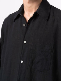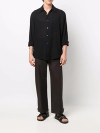 long-sleeve cotton shirt black cotton classic collar front button fastening chest patch pocket long sleeves buttoned cuffs curved hem Imported Composition Cotton 100%, Mother of Pearl 100% SIZE & FIT Model measurements Height 6 ft 2 in(1.89 m) Bust/Chest 37.79 in(96 cm) Hips 37 in(94 cm) Waist 29.92 in(76 cm) FittingInformation This piece fits true to size. We recommend you get your regular size Cut for a loose fit Made with a mid-weight non-stretch fabric Washing instructions Machine Wash