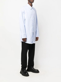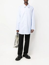 longline raw-cut shirt light blue cotton-hemp blend textured finish straight-point collar front button fastening long sleeves raw-cut hem Imported Composition Cotton 61%, Hemp 39% SIZE & FIT Model measurements Height 6 ft 1 in(1.85 m) Bust/Chest 31.88 in(81 cm) Hips 33.07 in(84 cm) Waist 26.77 in(68 cm) Measurement CHEST 44.09 in(112 cm) SLEEVE LENGTH 24.4 in(62 cm) LENGTH 29.92 in(76 cm) WAIST 44.88 in(114 cm) FittingInformation This piece fits true to size. We recommend you get your regular size Cut for a loose fit Made with a mid-weight non-stretch fabric Washing instructions Machine Wash