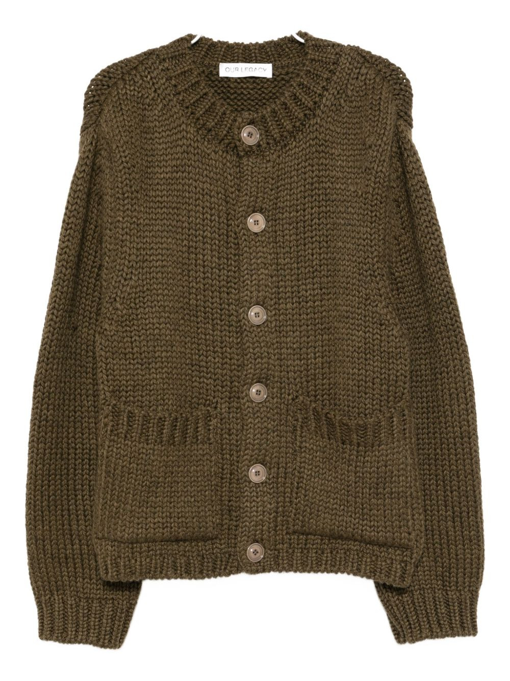 Over cardigan Highlights - Olive green - Front button fastening - Crew neck - Two front patch pockets - Ribbed cuffs and hem Imported Composition Wool 70%, Alpaca 30% SIZE & FIT Model measurements Height 6 ft 3 in(1.9 m) Bust/Chest 19.29 in(49 cm) Hips 38.58 in(98 cm) Waist 32.28 in(82 cm) FittingInformation Designed for a relaxed fit, this piece allows for comfort and movement when worn Made with a heavyweight knit, this piece offers some stretch Washing instructions Hand Wash