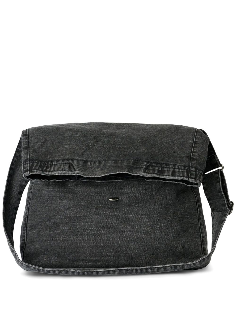 oversized denim messenger bag Highlights - Black - Flap closure - Adjustable shoulder strap - Exterior pocket - Embossed logo detail - Spacious interior compartment - Casual design - Reinforced stitching Made in Italy Composition Outer: Cotton 56%, Linen/Flax 44% SIZE & FIT Measurement HEIGHT 11.81 in(30 cm) WIDTH 13.77 in(35 cm)