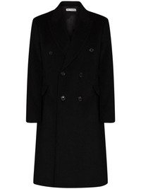 peak-lapel double-breasted coat If your cold season closet takes a dark turn, we advise you to paint it black with this Our Legacy black coat. Worry not, we too like to match the weather outside. Highlights - Black - Mohair/virgin wool blend - Peak lapels - Double-breasted button fastening - Long sleeves - Front flap pockets - Buttoned cuffs - Straight hem - Central rear vent - Mid-length Imported Composition Outer: Cattle Horn 100%, Mohair 50%, Virgin Wool 30%, Polyamide 20% Lining: Viscose 100% SIZE & FIT Model measurements Height 6 ft 2 in(1.87 m) Bust/Chest 38.18 in(97 cm) Hips 36.61 in(93 cm) Waist 29.13 in(74 cm) FittingInformation This piece fits true to size. We recommend you get your regular size Cut for a loose fit Made with a mid-weight fabric Measurement CHEST 48.03 in(122 cm) SLEEVE LENGTH 27.16 in(69 cm) Shoulder Width 20.47 in(52 cm) WAIST 47.24 in(120 cm)