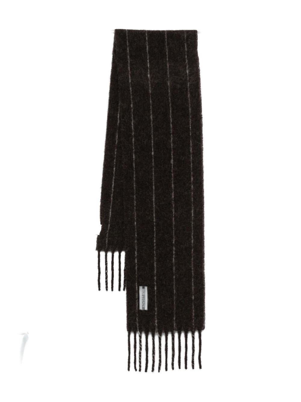 pinstriped fringe scarf Highlights - Dark brown - Pinstriped - Fringe trim - Rectangular Imported Composition Alpaca 60%, Wool 25%, Polyamide 15% SIZE & FIT Measurement LENGTH 86.61 in(220 cm) WIDTH 10.62 in(27 cm) Washing instructions Read Manufacturer Guidelines