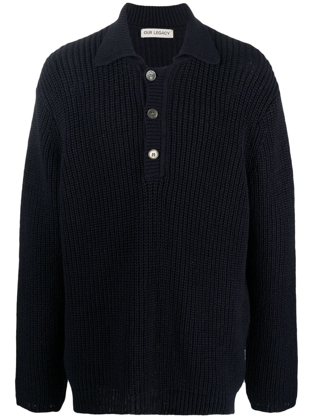 ribbed-knit cotton jumper navy blue cotton chunky ribbed knit mother-of-pearl buttons spread collar short front button fastening long sleeves straight hem Imported Composition Mother of Pearl 100%, Cotton 100% SIZE & FIT Model measurements Height 6 ft 2 in(1.87 m) Bust/Chest 36.41 in(92.5 cm) Hips 37 in(94 cm) Waist 29.52 in(75 cm) Measurement CHEST 51.18 in(130 cm) SLEEVE LENGTH 25.59 in(65 cm) LENGTH 30.31 in(77 cm) FittingInformation This piece fits true to size. We recommend you get your regular size Made with a mid-weight fabric Washing instructions Machine Wash